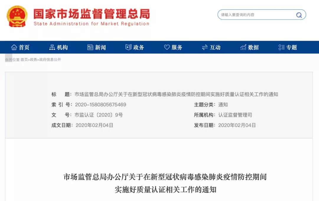 重磅:認(rèn)證證書(shū)有效期順延,至疫情解除后3個(gè)月