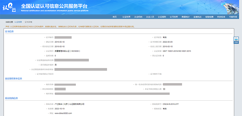 中國認監(jiān)委官方網站查詢結果: