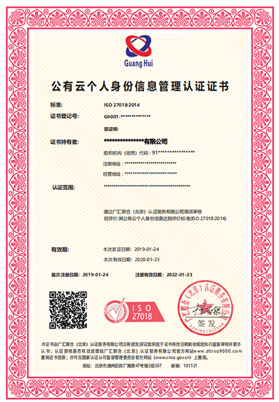 廣匯聯(lián)合認證產(chǎn)品發(fā)布--公有云個人身份信息管理體系